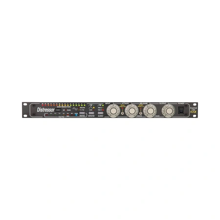 - W klasycznych wersjach Distressora nie ma fizycznego włącznika na przednim panelu – urządzenie włącza się po podpięciu kabla zasilającego, co jest typowe dla wielu profesjonalnych urządzeń studyjnych.