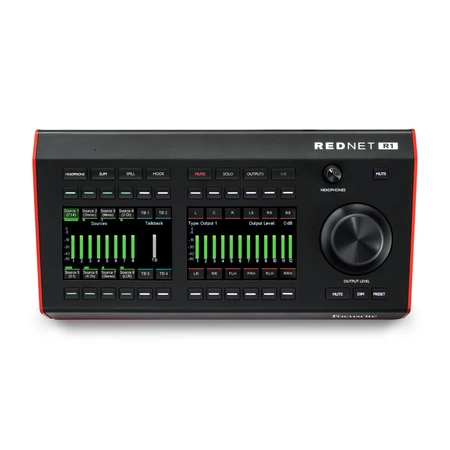- RedNet R1 jest zoptymalizowany do pracy z interfejsami Red, oferując pełną funkcjonalność, w tym sterowanie preampami i cztery grupy talkback. Może jednak pracować z dowolnym urządzeniem w sieci Dante jako kontroler monitoringu, choć niektóre zaawansowane funkcje mogą być ograniczone (np. dostępna jest tylko jedna grupa talkback).